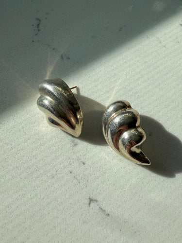 Vintage Sterling Silver Scalloped Post Back Earrings
