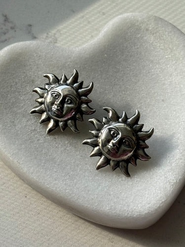 Vintage Celestial Sun Face Post Back Sterling Earrings
