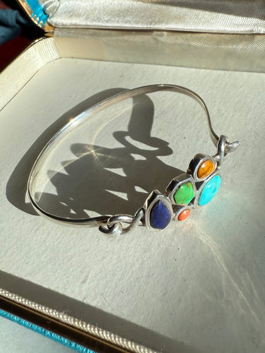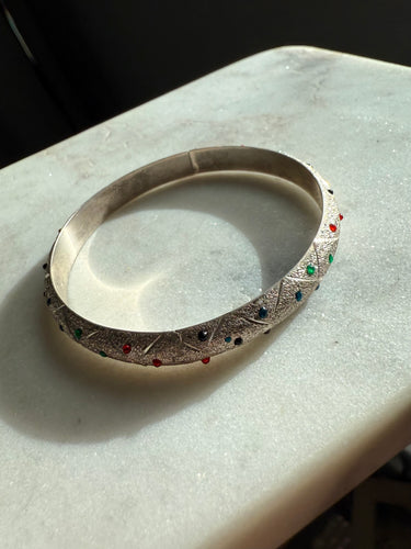 Colorful Enamel Sterling Silver Bangle Bracelet