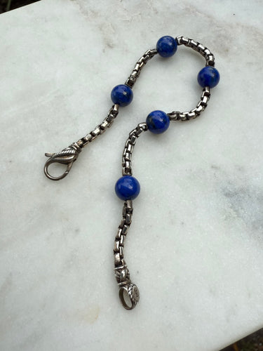 Jai Lapis Bead & Sterling Silver Bracelet 7.75”