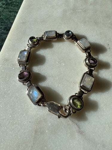Moonstone Amethyst Peridot Sterling Silver Bracelet 6.75”