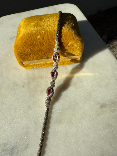 Ruby & Diamond Sterling Silver Bracelet 7”