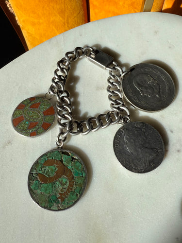 Vintage Taxco Mexico Mexico Sterling Chunky Coin Bracelet 7”
