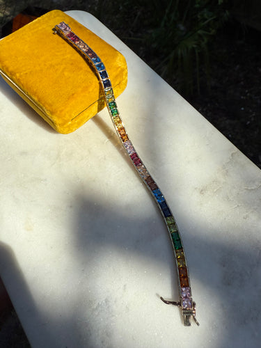y2k Rainbow Gold Vermeil Tennis Bracelet 6.75”