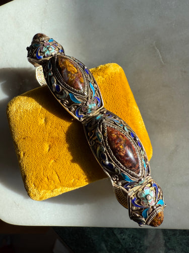 Antique 800 Silver Goldtone Vermeil Enamel Chinese Bracelet