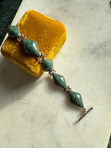 Green Sterling Silver Bracelet Toggle Clasp 6.25”