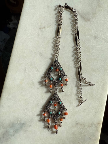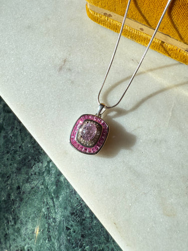 Sterling Morganite Pink Sapphire Zircon Necklace 18”