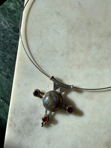 Labradorite & Garnet Sterling Silver Torque Necklace 18”