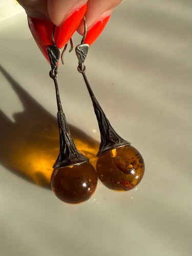 Natural Baltic Amber Vintage Sterling Silver Teardrop Earrings