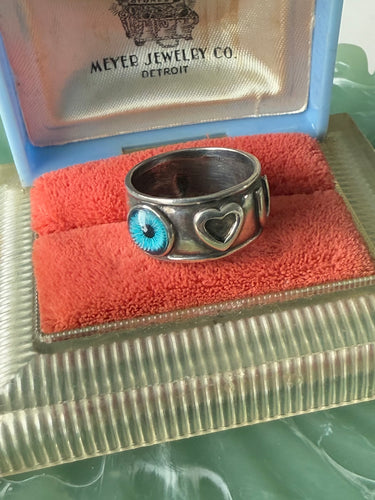 Vintage Eye Love You Sterling Silver Ring Size 7.25