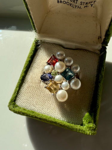 Multi Gemstone & Pearl Sterling Silver Ring Size 7.25