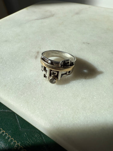 Vintage Brutalist Sterling Silver & 10k Yellow Gold Ring Size 6.5