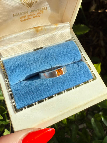 Orange Glass Sterling Silver Ring Size 6.5