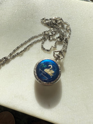 Simulated Opal Inlay Sterling Silver Necklace 14.5”
