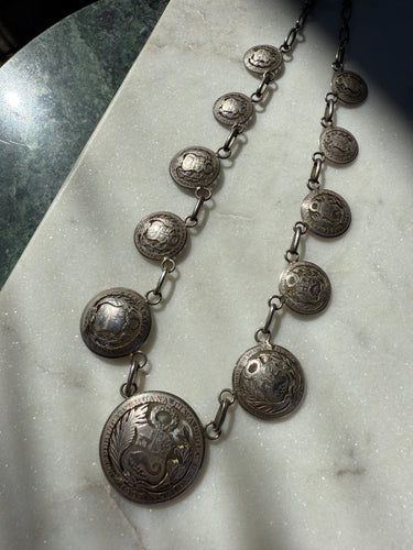 Sterling Silver 1864-1913 Peruvian Coin Necklace 17”