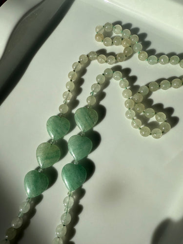 Heart Green Jade Necklace 32”
