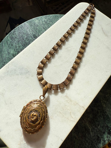Antique Victorian Locket Book Chain Brass Necklace 18.5”