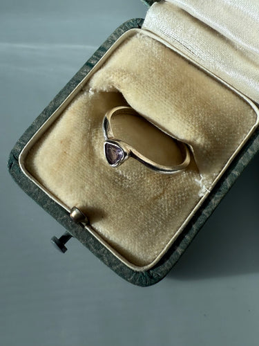 Dainty Amethyst Glass Sterling Silver Heart Ring Size 8.25