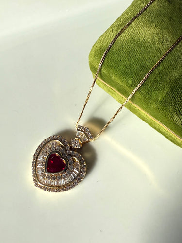 Chunky Red Heart Gold Vermeil Necklace
