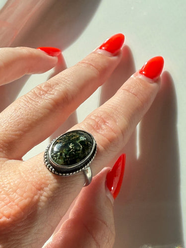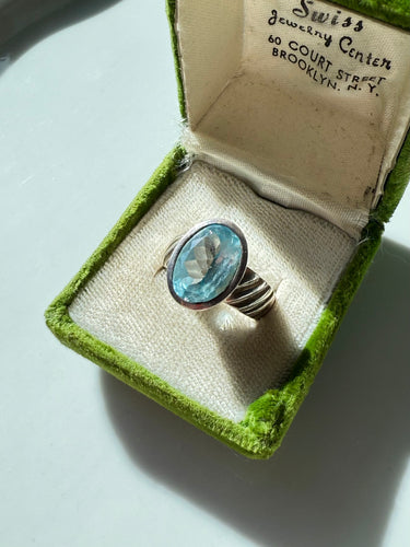 Blue Oval Glass Sterling Silver Ring Size 8.5