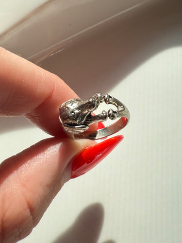 Dog Wraparound Sterling Silver Ring Size 5.75