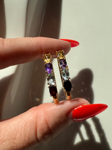 Gold Vermeil Multi Gemstone Clicker Hoop Earrings