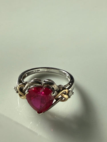 Red Heart Sterling Silver & 14k Gold Ring Size 5.25