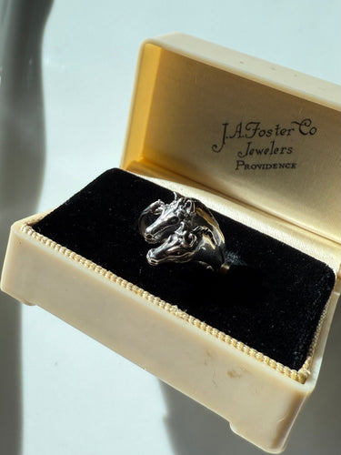 Vintage Double Horse Sterling Silver Ring Size 6.25