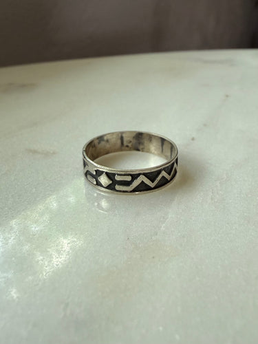 Geometric Shapes Band Sterling Silver Ring Size 7.5
