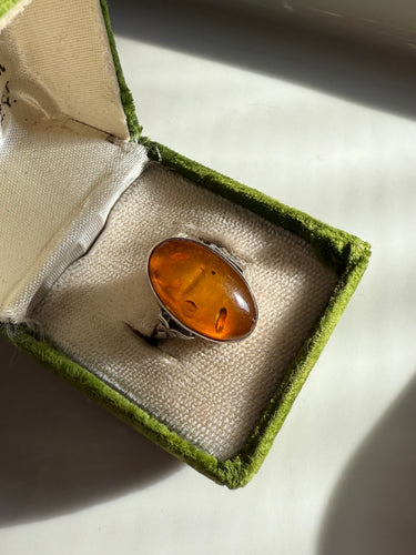 Vintage Orange Tigers Eye Sterling Silver Ring Size 7.5