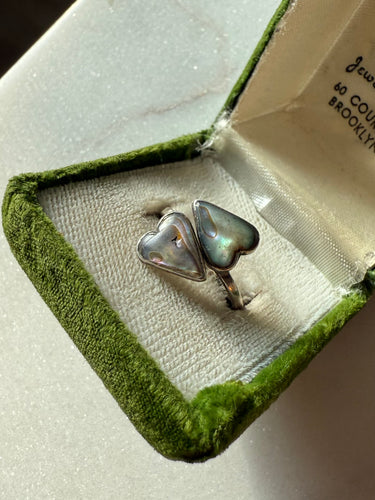 Abalone Heart Bypass Sterling Silver Ring Size 7.5