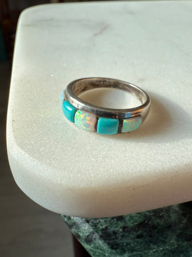 Turquoise & Opal Sterling Silver Ring Size 9.25