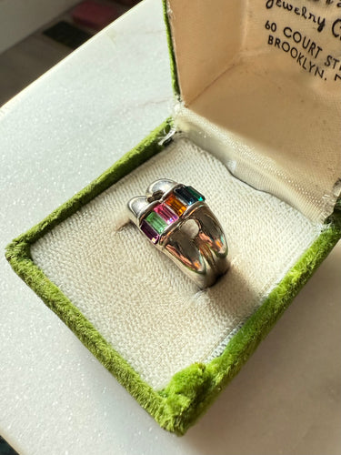Multicolor Stone Sterling Silver Ring Size 7.25