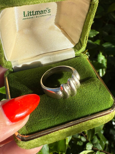 Solid Sterling Silver Ribbed Ring Size 9.25