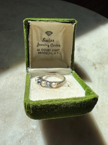 Pearl Blue Topaz Sterling Silver Ring Size 8