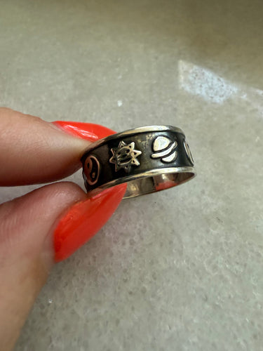 Celestial Saturn Sun Sterling Ring Size 9.25
