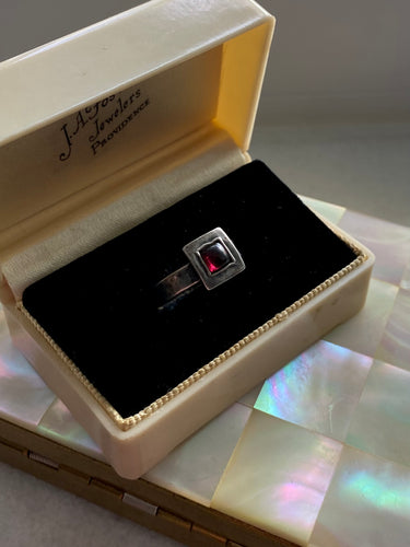 Cabochon Garnet Square Sterling Silver Ring