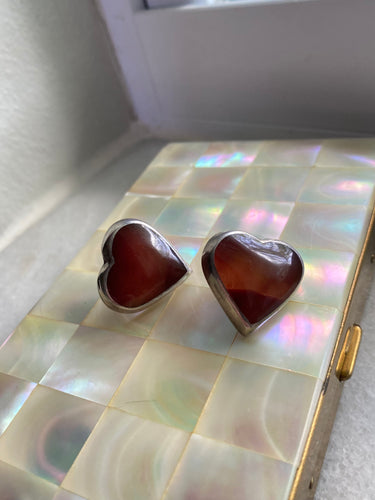 Carnelian Sterling Silver Vintage Heart Post Back Earrings