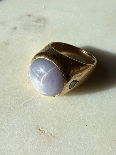 Star Sapphire & Diamond 14k Yellow Gold Ring Size 8