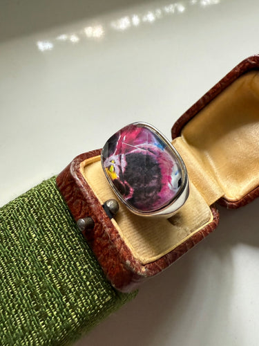 Crushed Inlay Sterling Bypass Ring Size 7.5