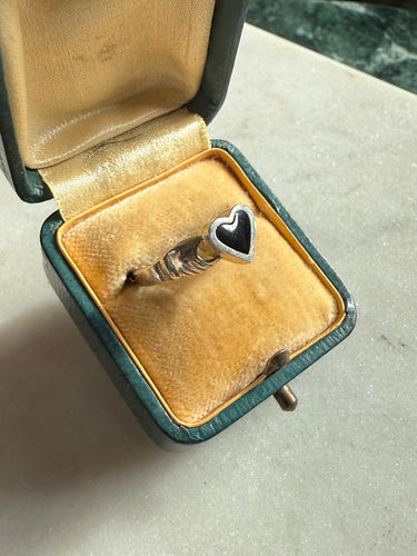 Black Onyx Sterling Silver Heart Ring Size 7.75
