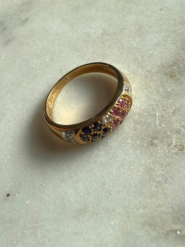 Diamond Ruby Blue Sapphire 14k Gold Ring Size 6.75