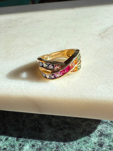 Rainbow Sapphires 10k Yellow Gold Ring Size 5.25