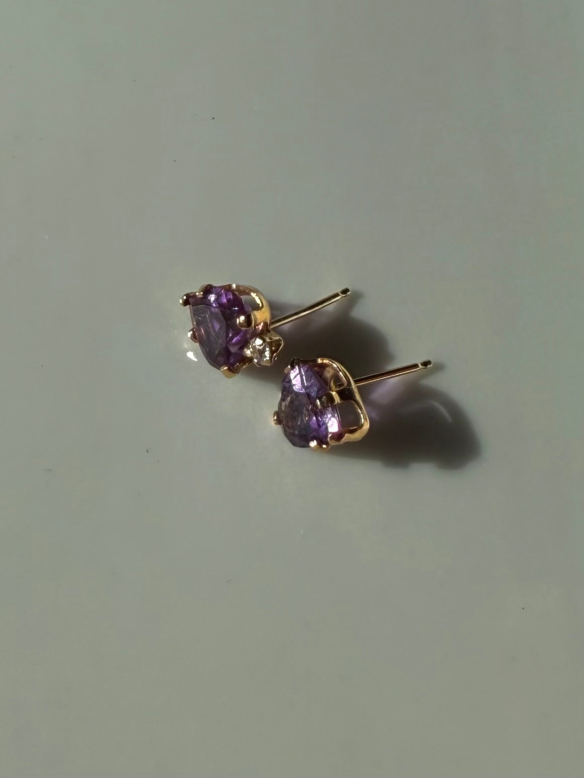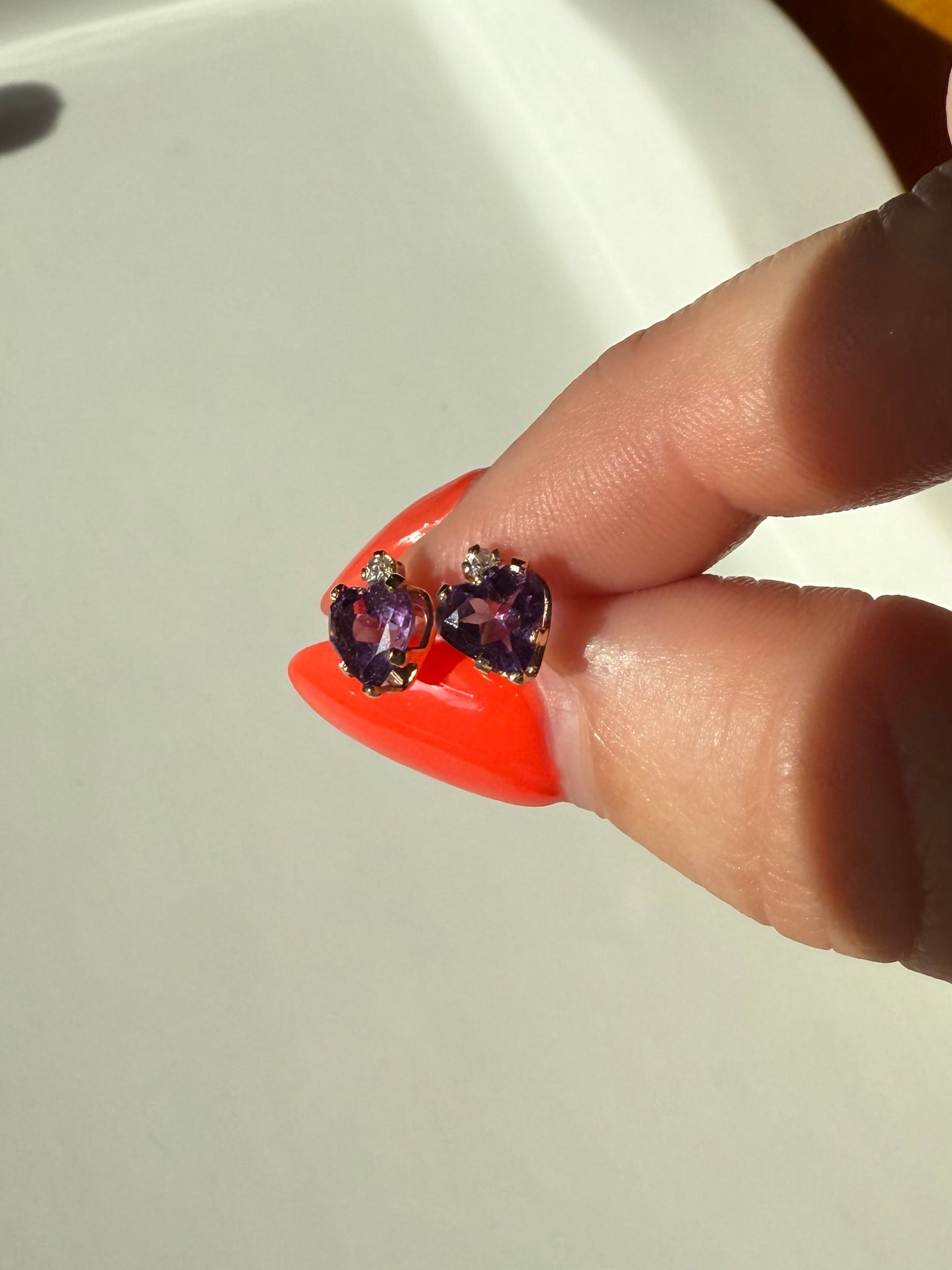Amethyst Diamond 14k Yellow Gold Gold Heart Earrings