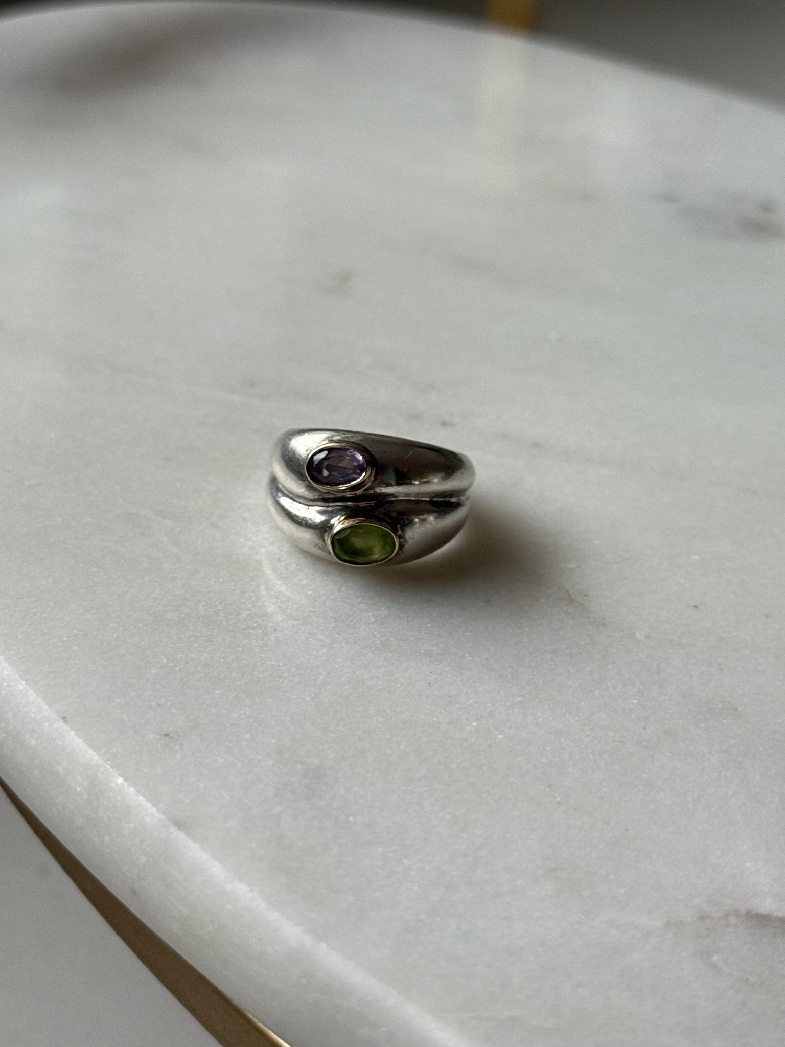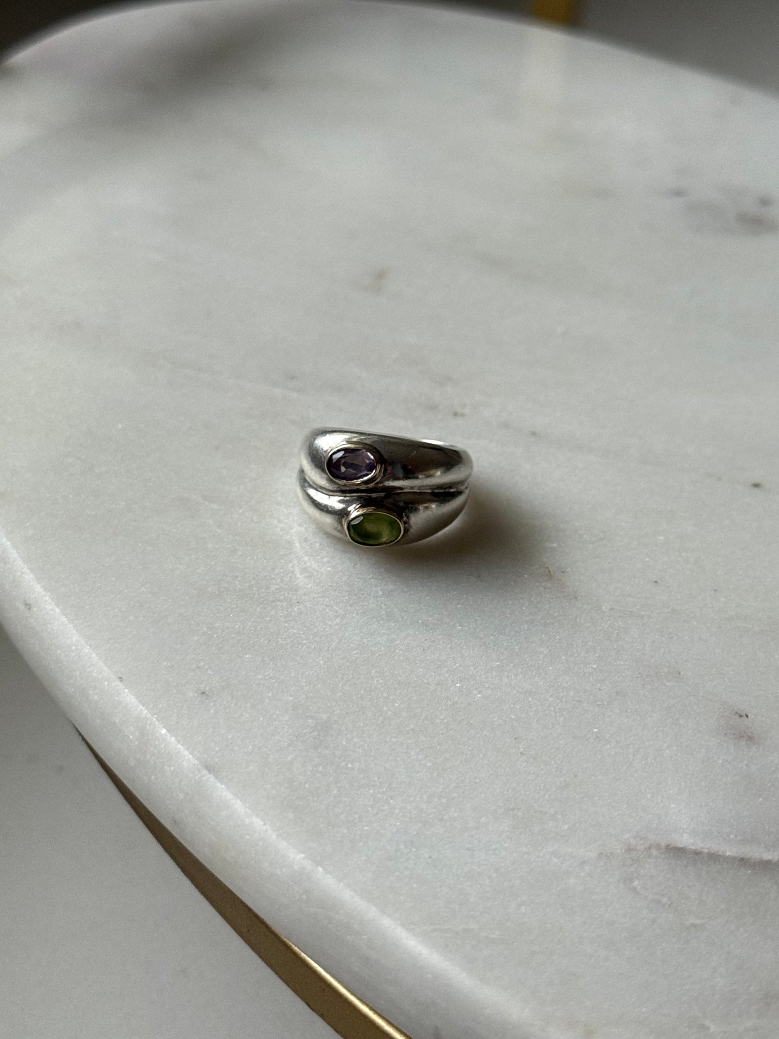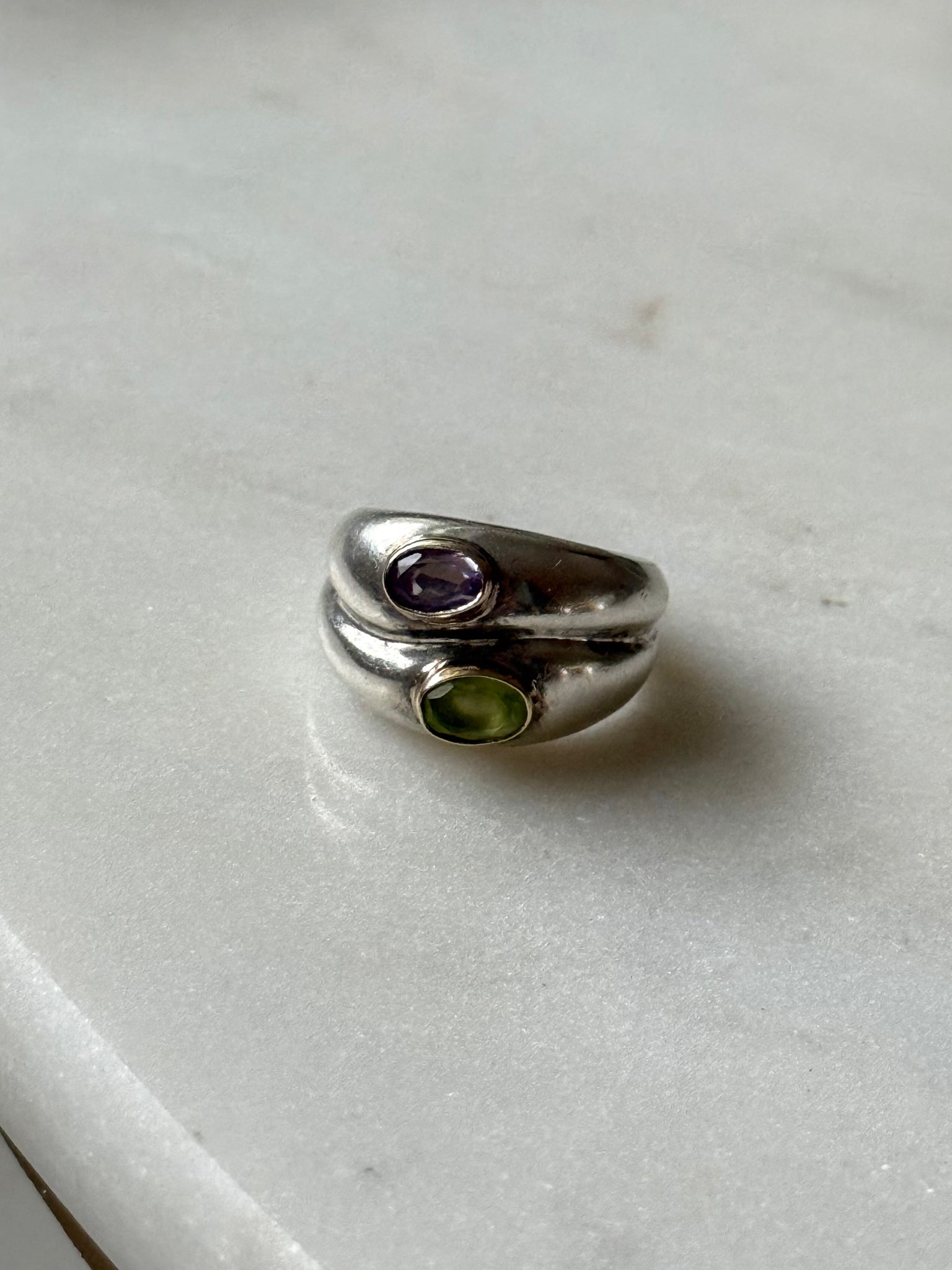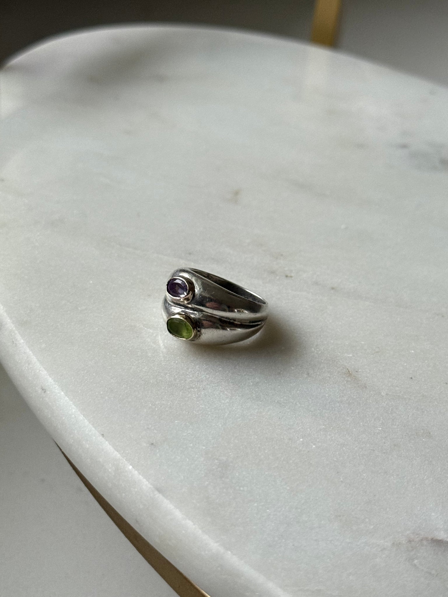 Amethyst & Peridot Sterling & 14k Gold Ring Size 5.5