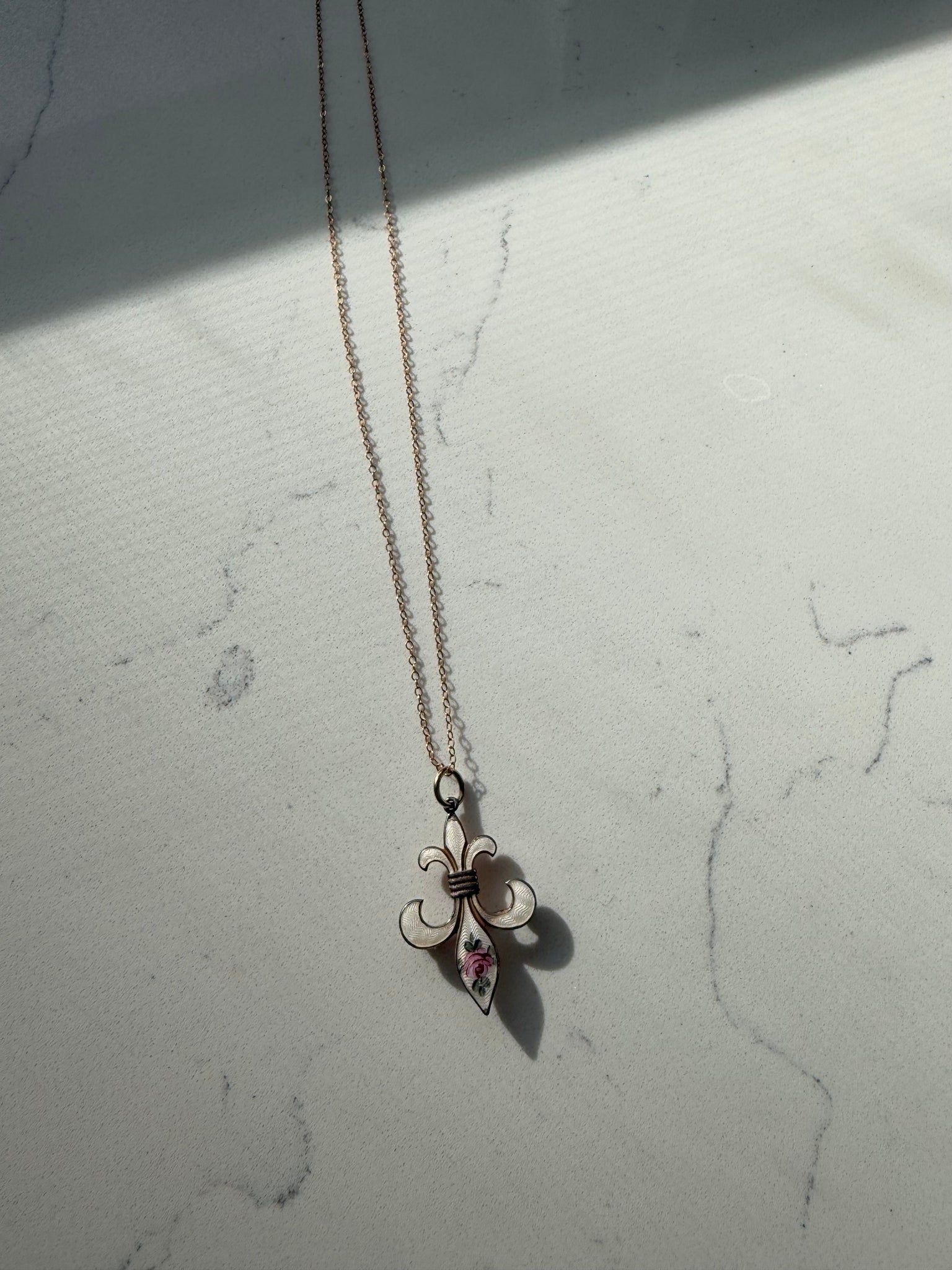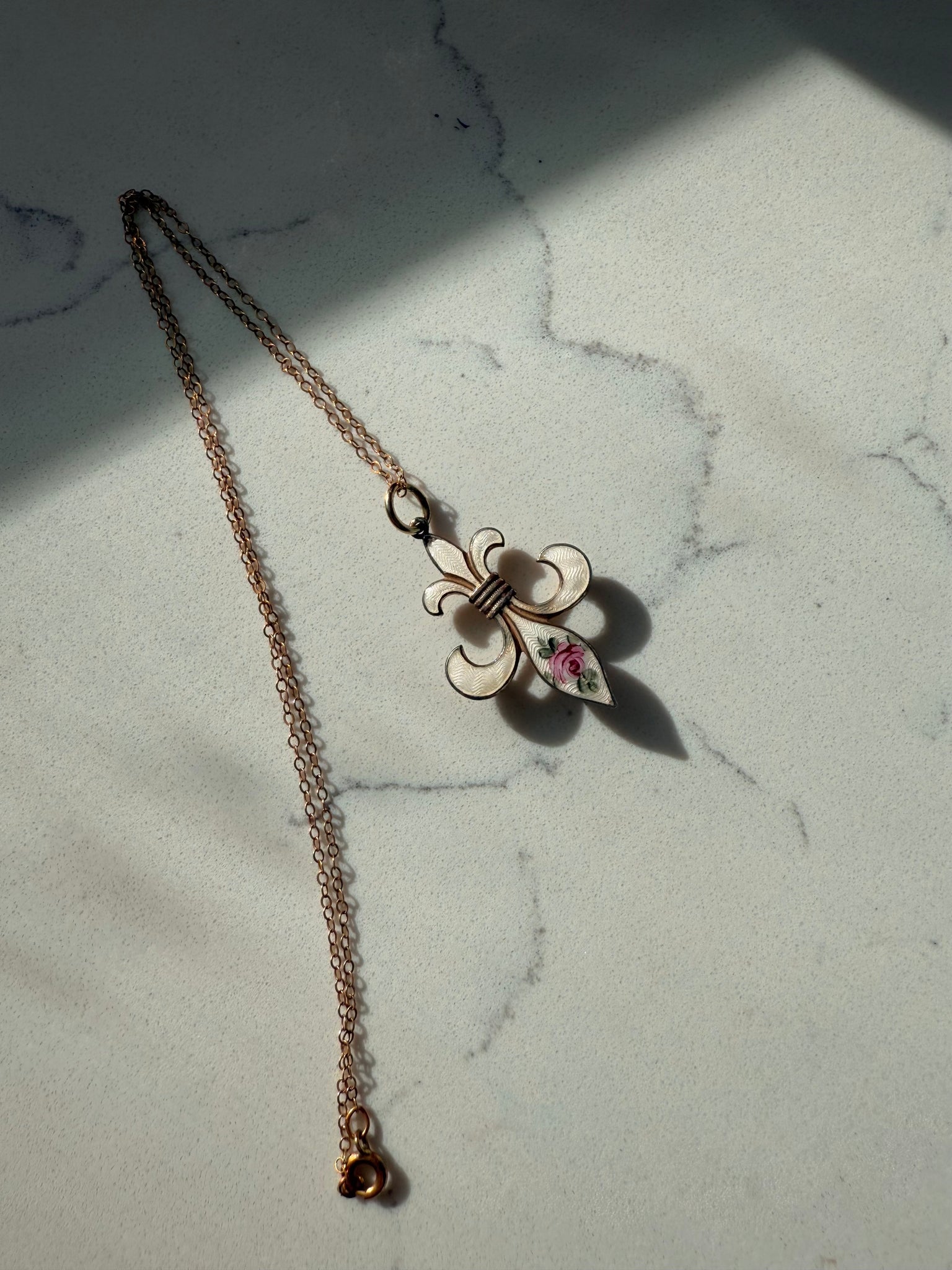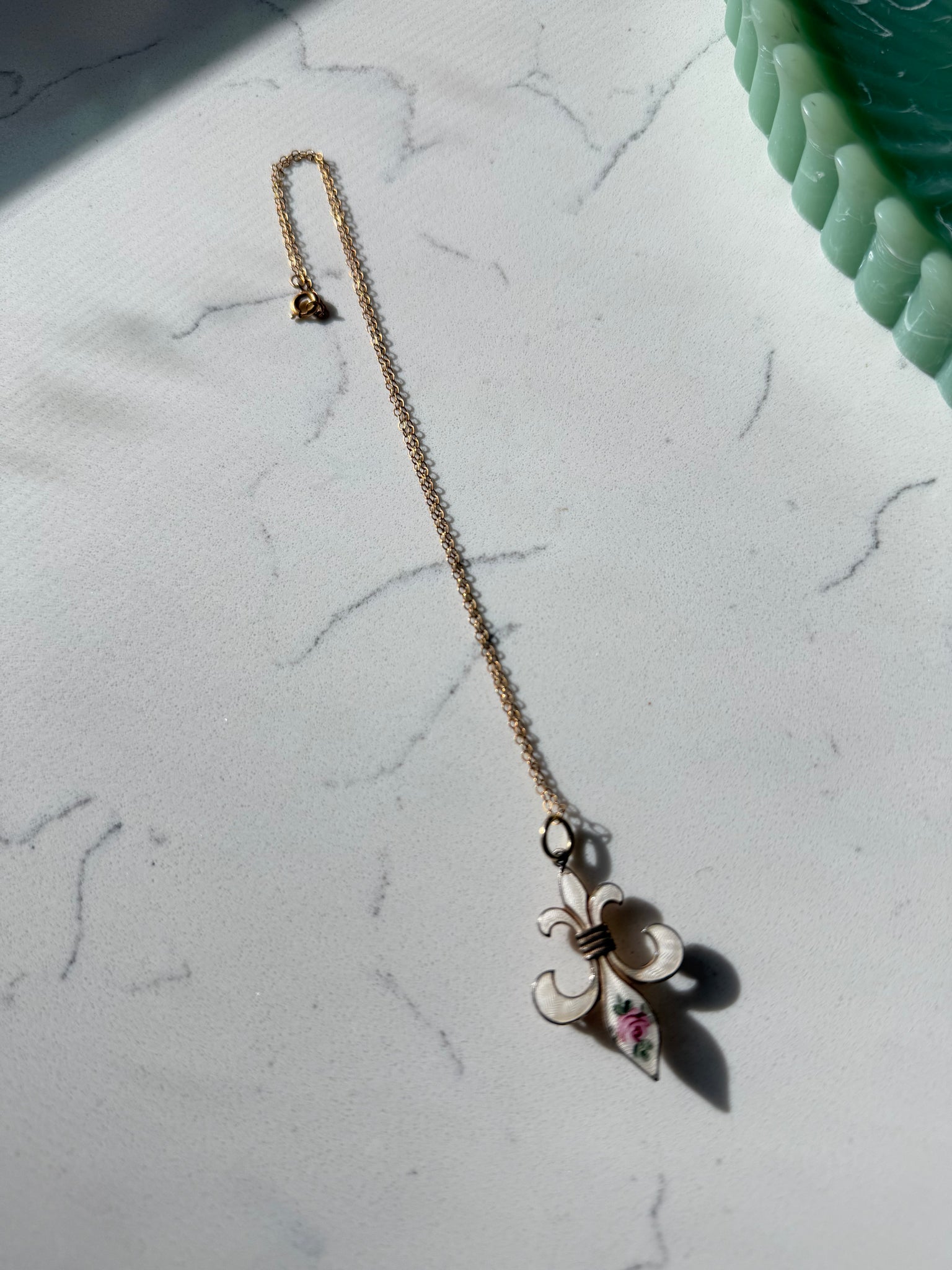 3.9 grams • fleur de lis measures 1.25” x .85” • chain measures 15.25” length