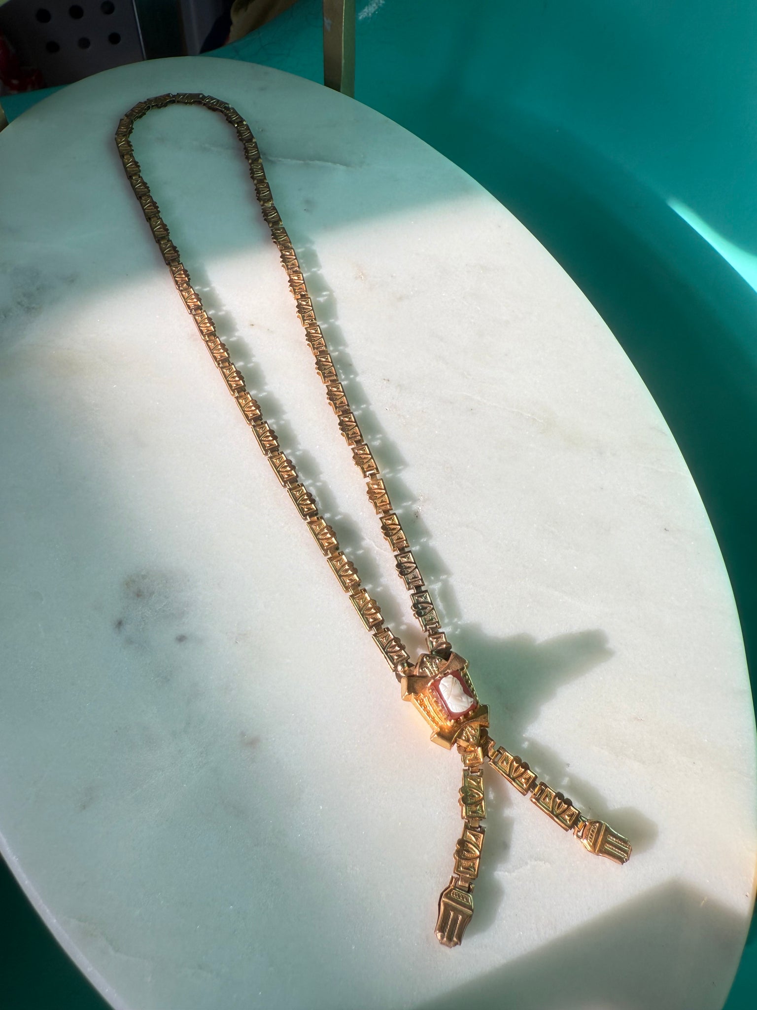 12.7 grams • some wear due to age • unsure of metal purity. I was thinking gold fill but cannot find any marks so I am calling it gold plated • 16” length
