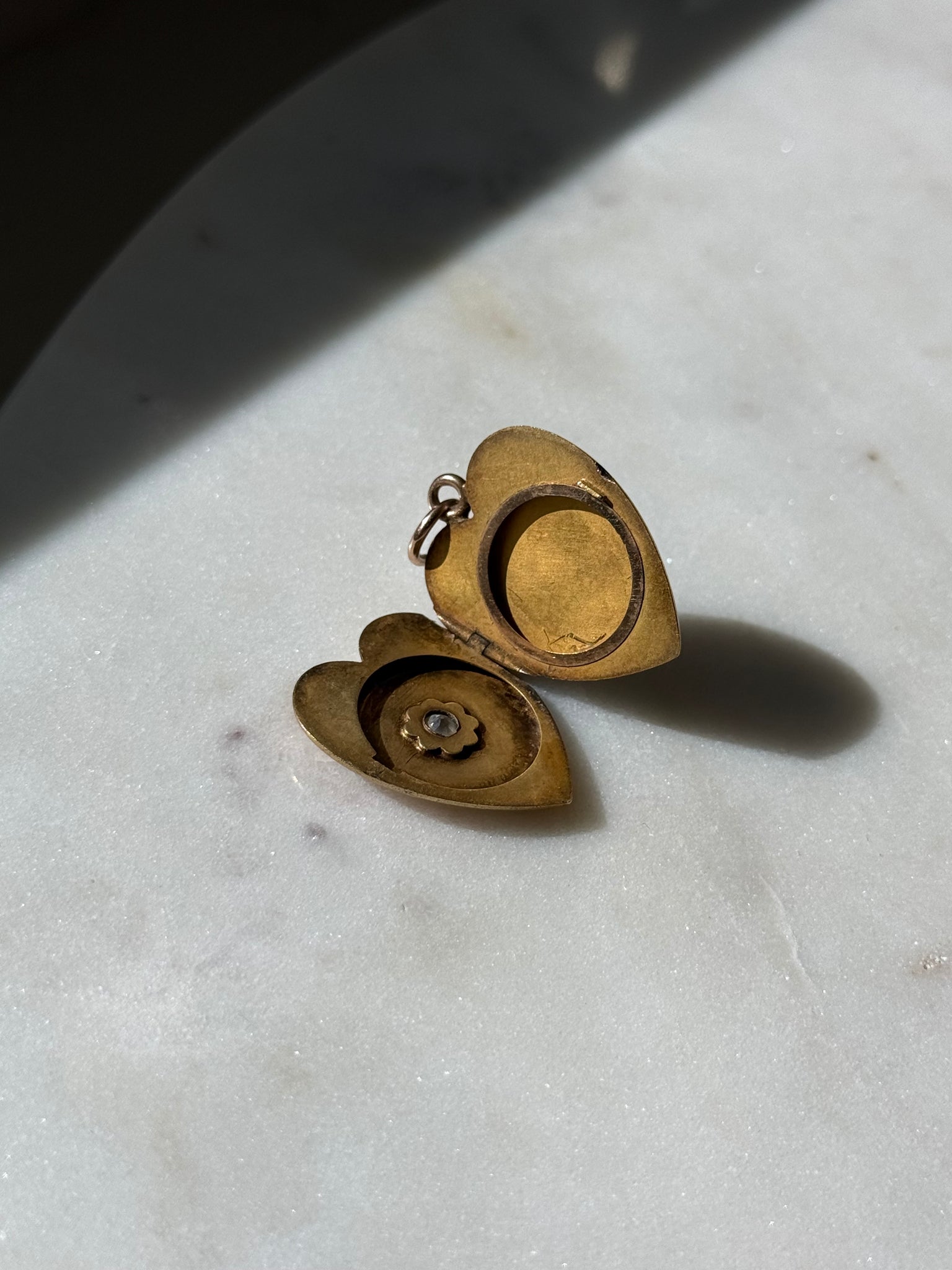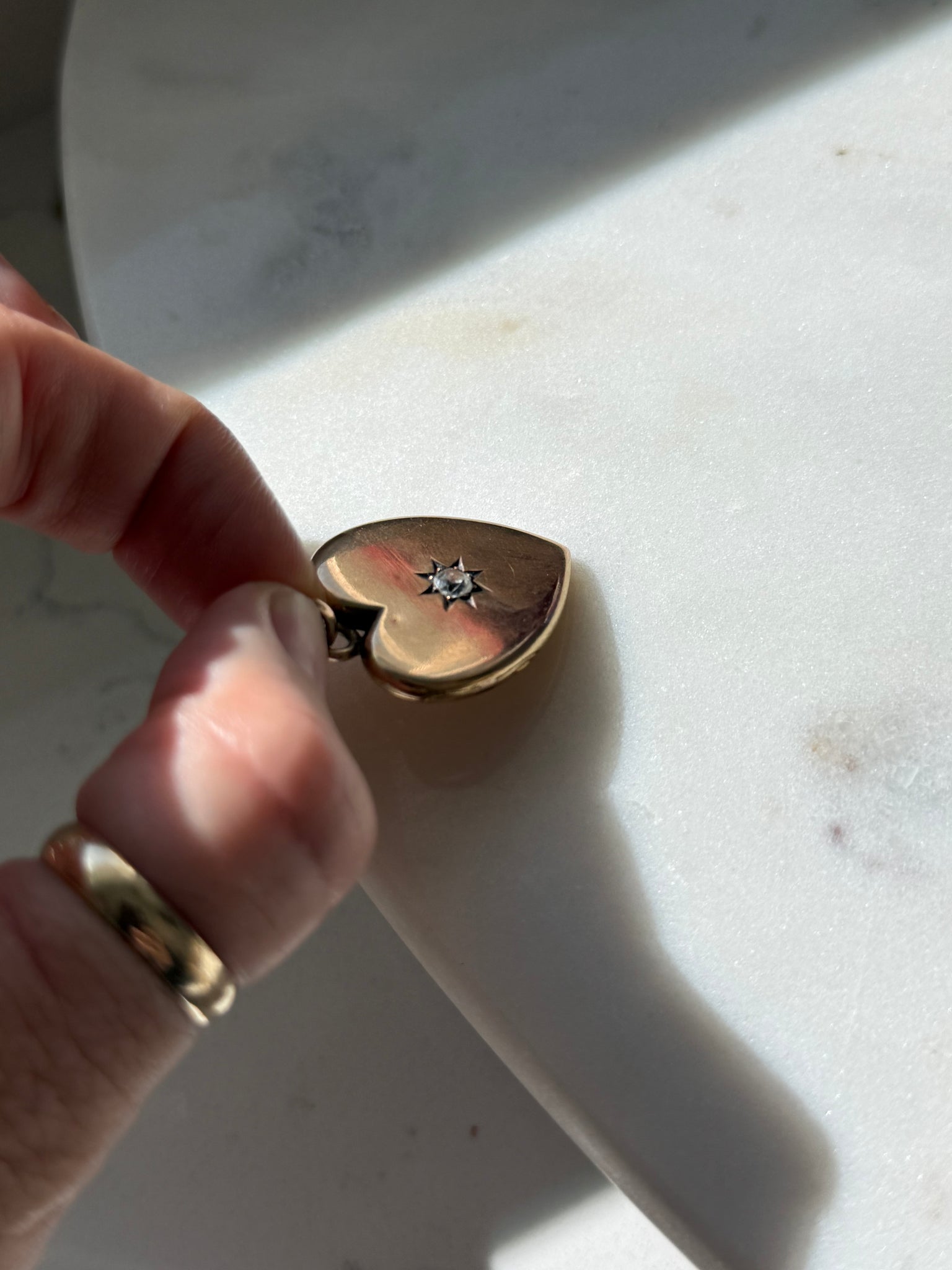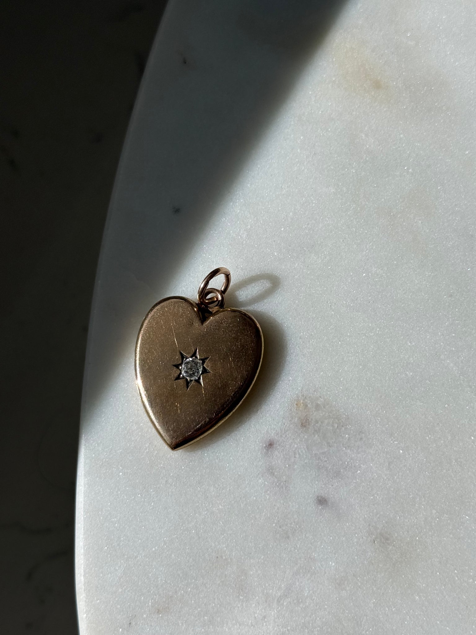 Solid 14k Gold Starburst Set .25ct Old Mine Cut Diamond Heart Locket