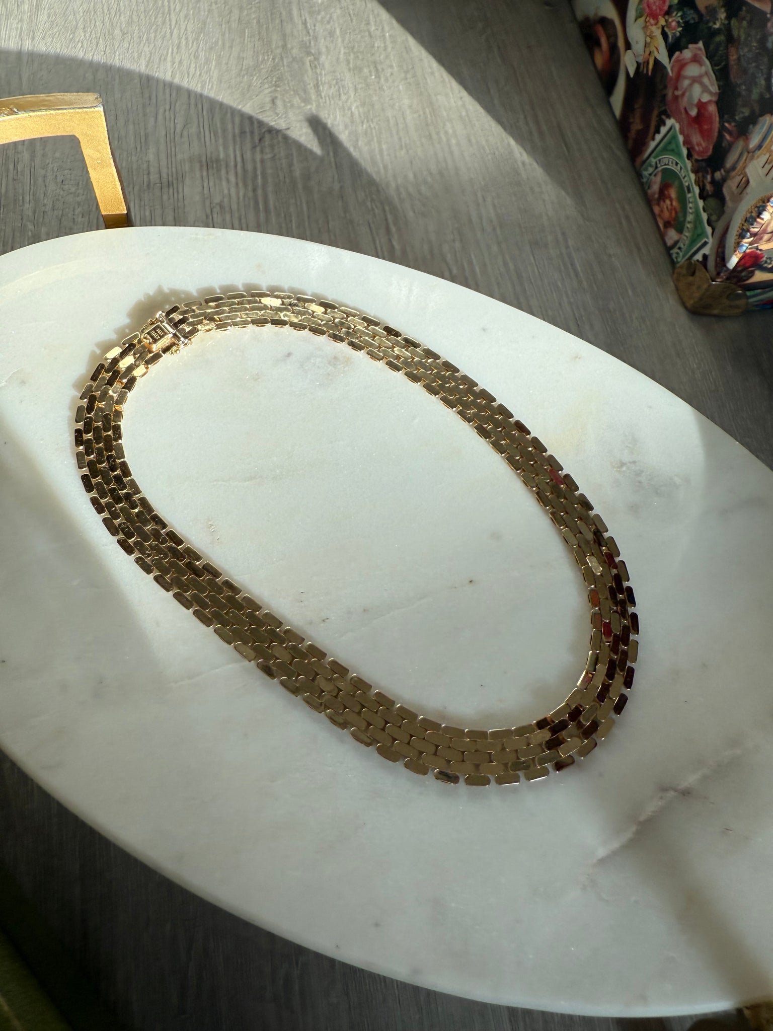 35.8 grams12mm width links15.75” length fully lying flat, sits more like 15” due to width