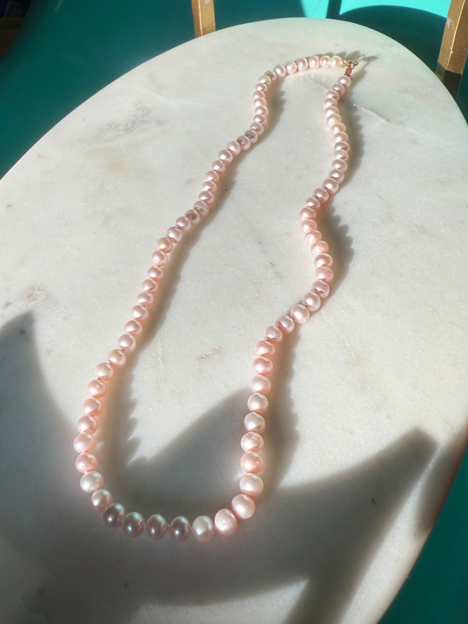 Baby Pink Pearl 10k Gold Necklace 17.5”